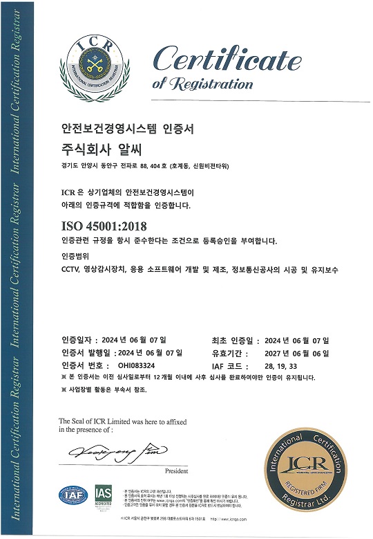 주식회사 알씨가 안전보건경영인증을 획득하였습니다!